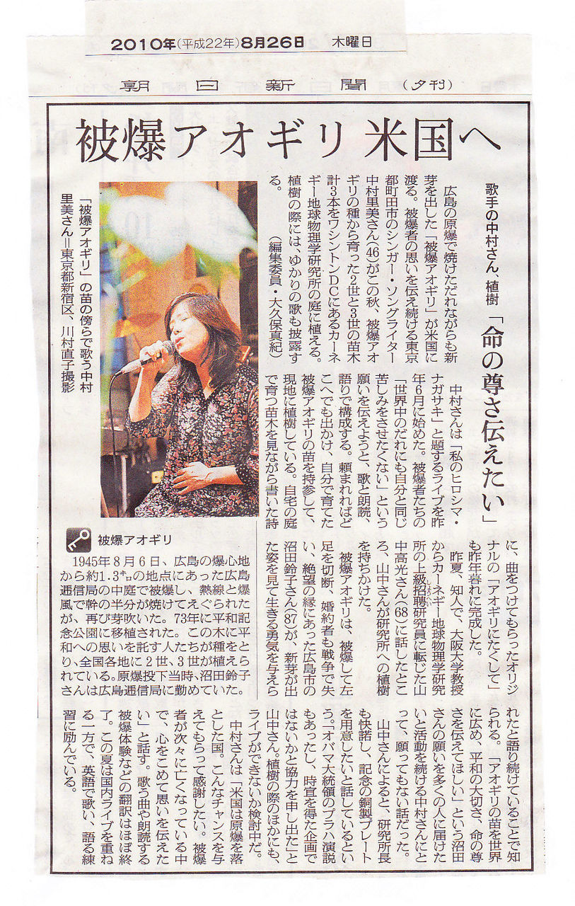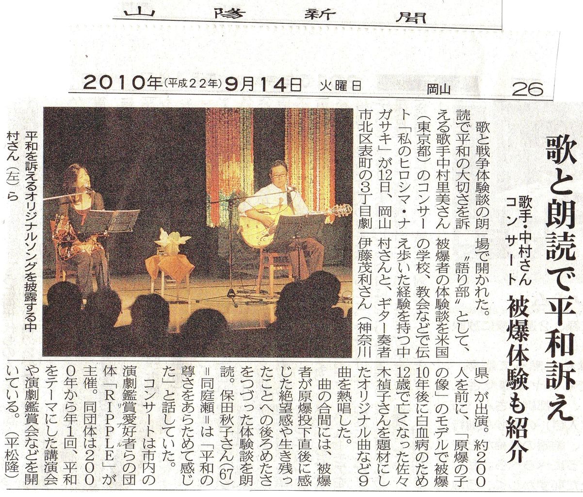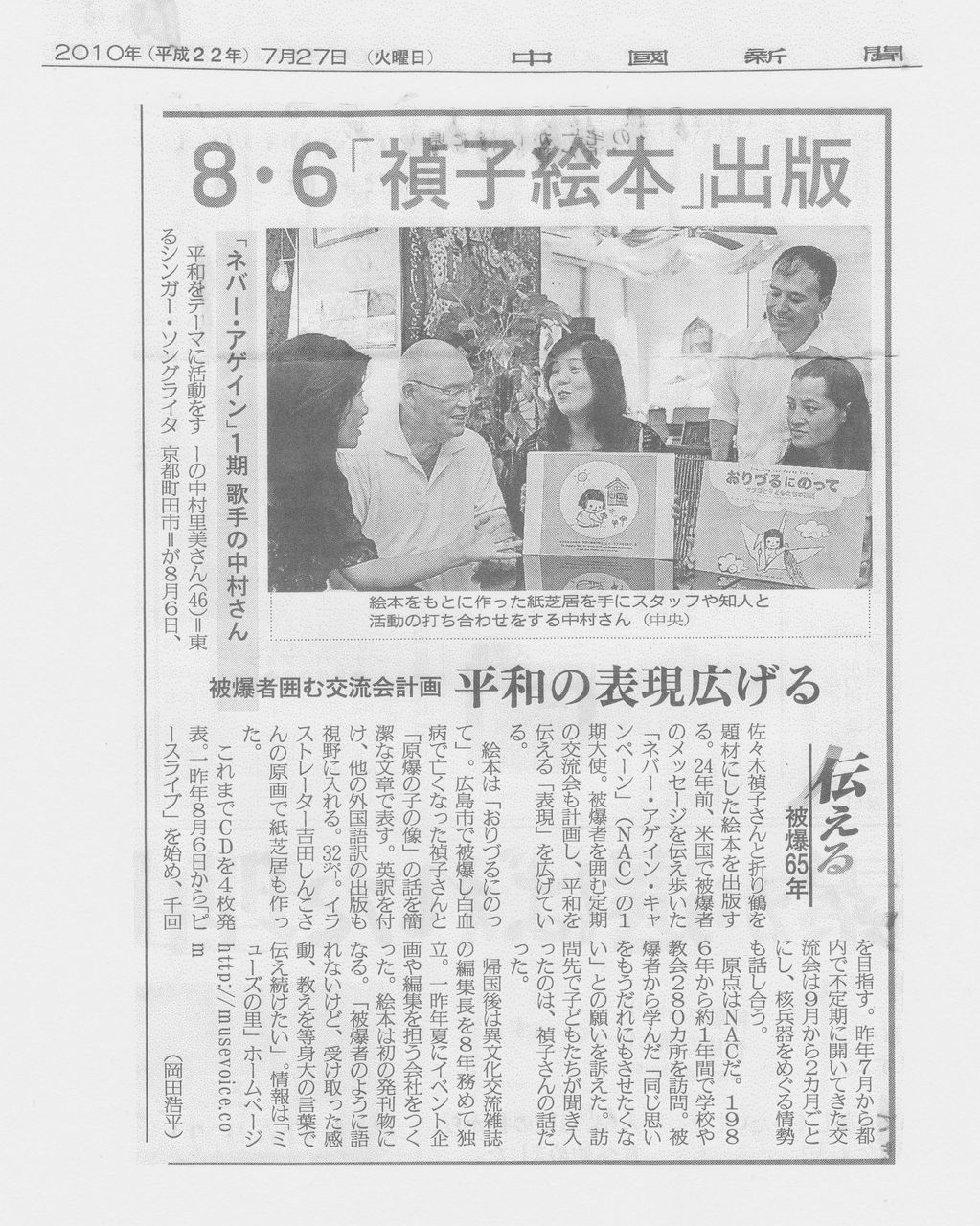 ・7カ国の8名が原爆朗読劇(中国新聞)