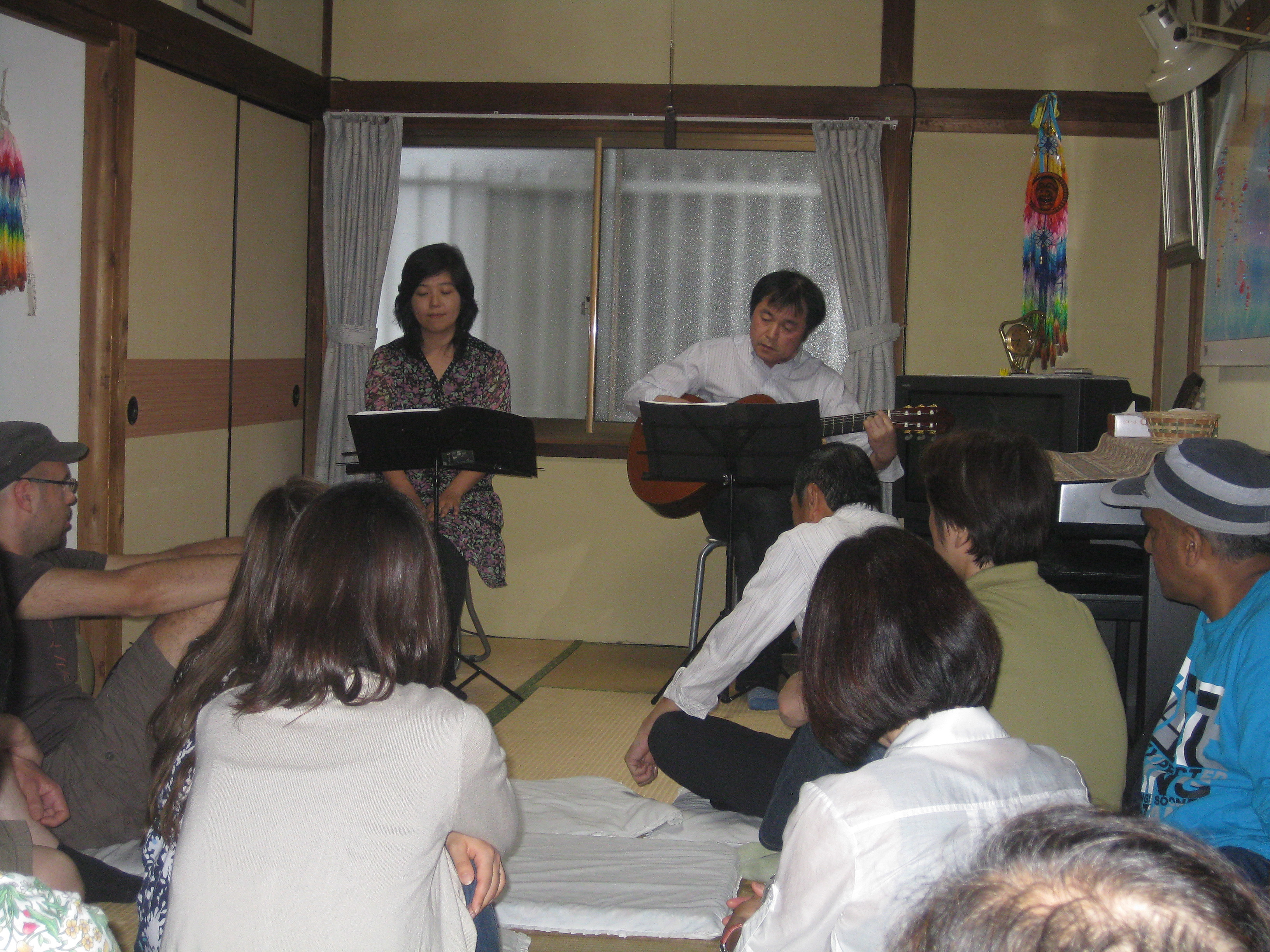 ◎里美コメント◎ へんり未来さんのメディカル流しからスタート!へんりさんの奥様の今日明日香さんとへんりさんのユニットや、杉笑太郎さん、OMIさんがゲストでご参加されました!NHKの取材も入り、へんり未来さんのメディカル流しの様子がNHKの「おはよう!日本」で5日に放映予定です! へんりさんにギター演奏していただき、「トンボが消えた日」「アオギリにたくして」を演奏させていただきました! |